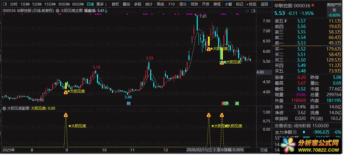 大阳见底主图源码: