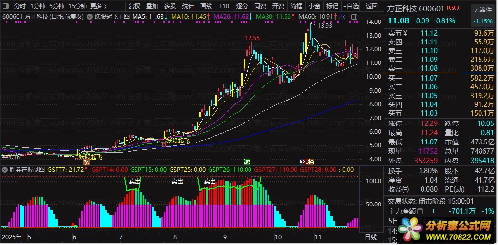 本指标为强势趋势型股票指标公式,专为捕捉妖股启动初期设计。建议结合K线形态与成交量综合研判,效果更佳。当个股经历长期缩量震荡后,若某日突然放量上涨,且通达信“妖股起飞”主图指标发出“妖股起飞”信号,即为高胜率的短线抄底买点,是挖掘翻倍潜力妖股的实用技术工具。