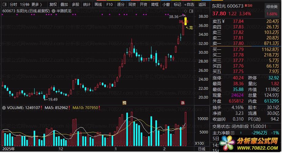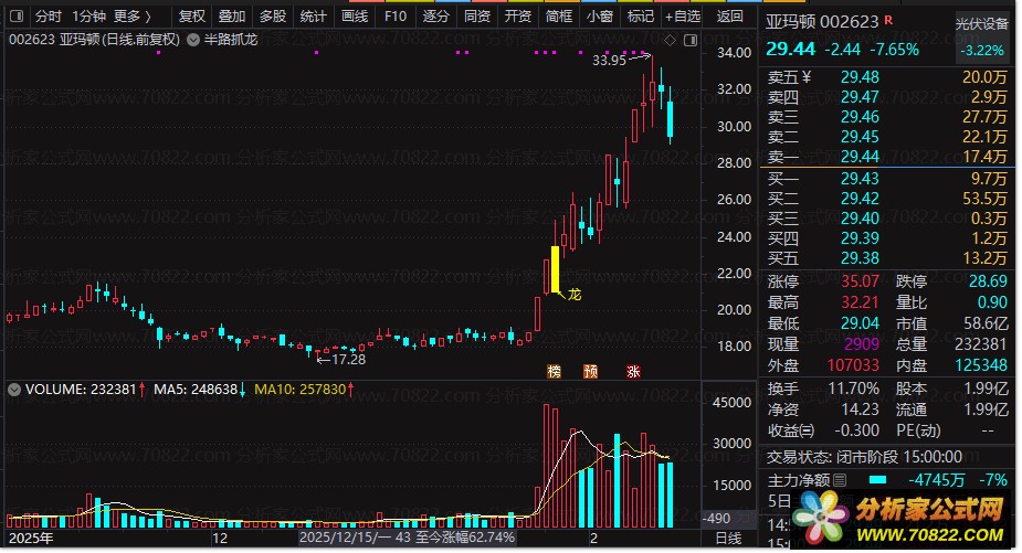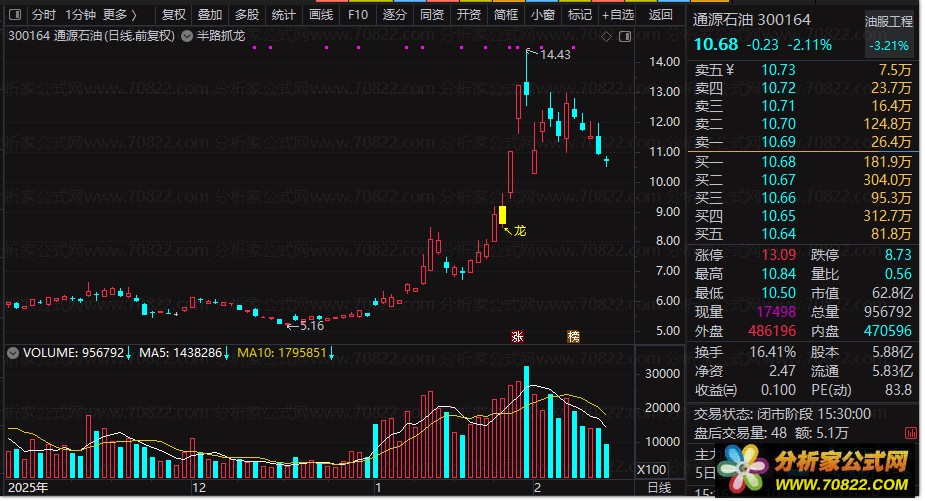 〖半路抓龙主图〗涨停板后回调低吸与强势股启动点识别 “半路抓龙副图”是一款专为A股市场设计的通达信副图指标公式,聚焦于涨停板后回调低吸与强势股启动点识别。该公式通过多重过滤条件,有效排除ST股、新股及异常波动品种,并结合EMA均线系统与价格结构特征,精准定位主力资金可能再度发力的“半路龙”机会。