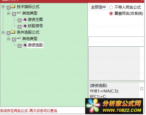 * 关于股票公式时间限制,如果在引入大智慧公式,交易师公式或者飞狐公式的时候,发现公式名称栏是空白的,这时候调整电脑时间到1997年,又能出现公式名称,并且能正常显示,可能是公式使用期限已过。