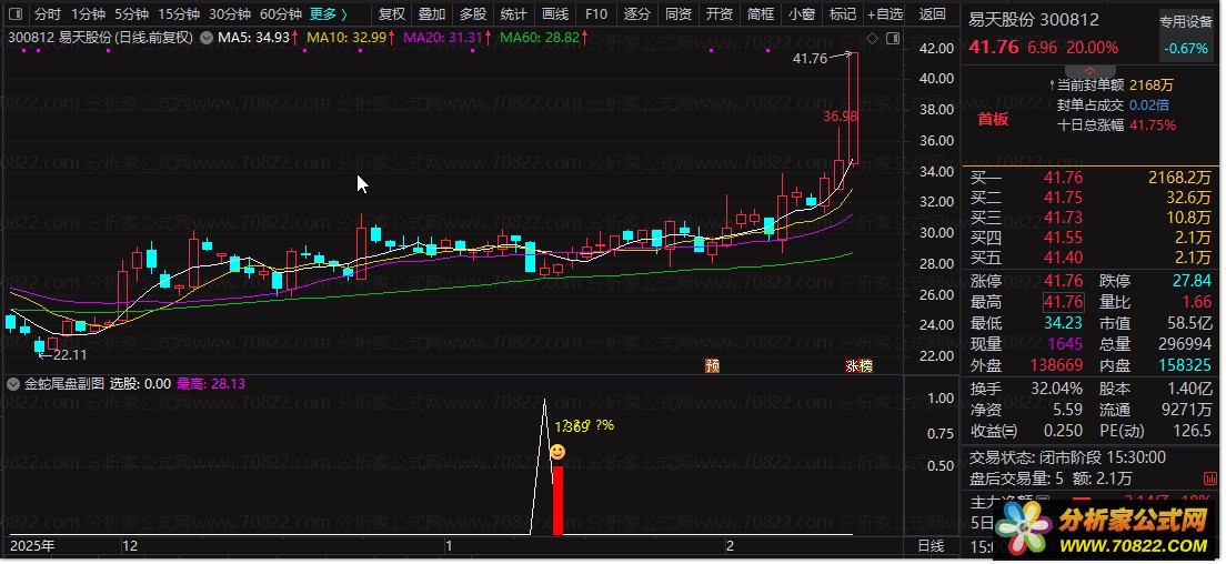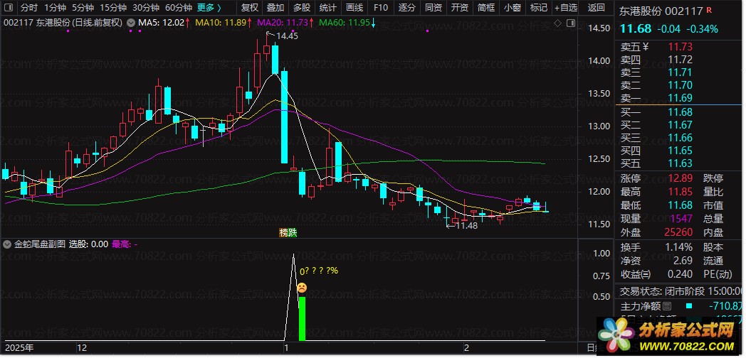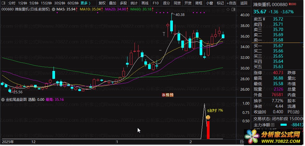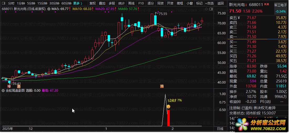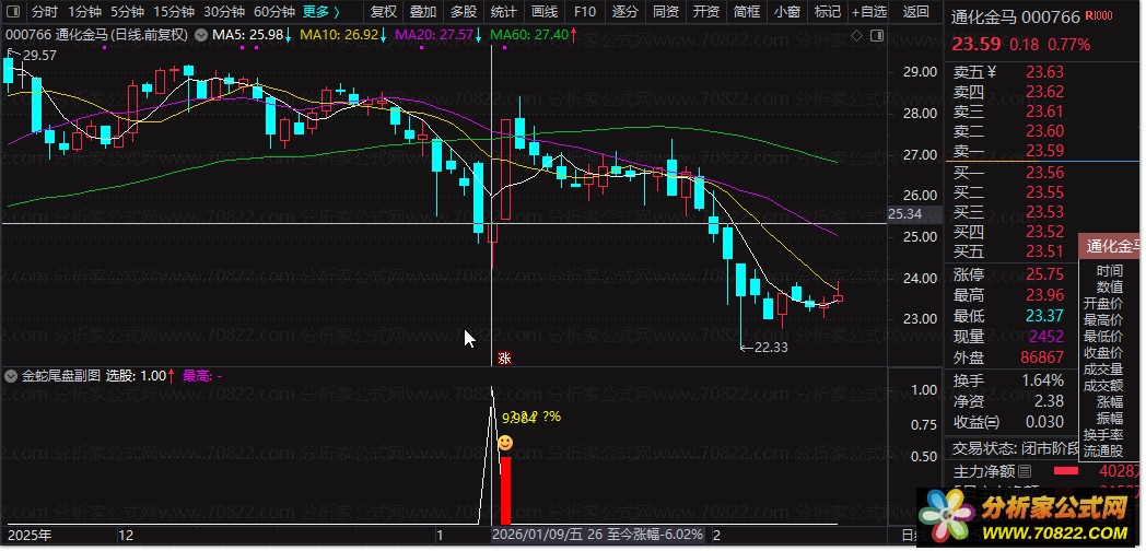 金蛇尾盘通达信选股公式副图指标 T+1尾盘买入隔日卖出策略 高胜率股票技术指标源码 指标介绍: