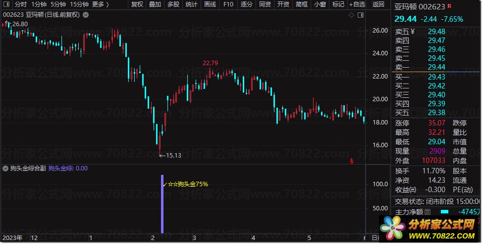 〖狗头金综合副图〗多重共振抄底神器,捕捉75%胜率黄金买点! 公式介绍