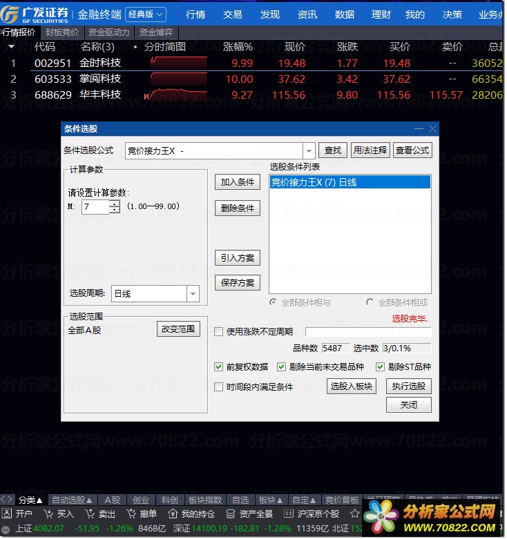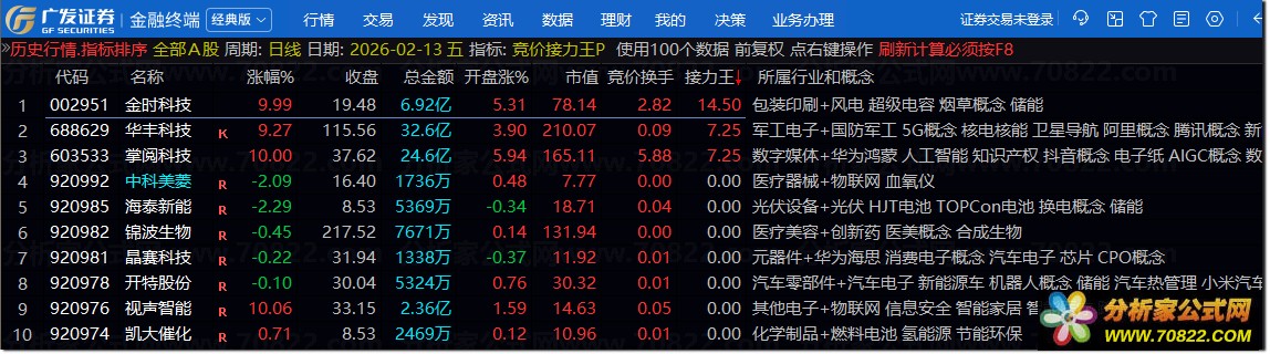 仅适用于A股竞价结束后9:25-9:30后排序或者选股;