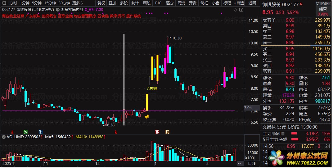 控盘跟进:使用“控盘选股”公式,捕捉股价突破主力成本区、确立升势的瞬间,适合右侧追涨。