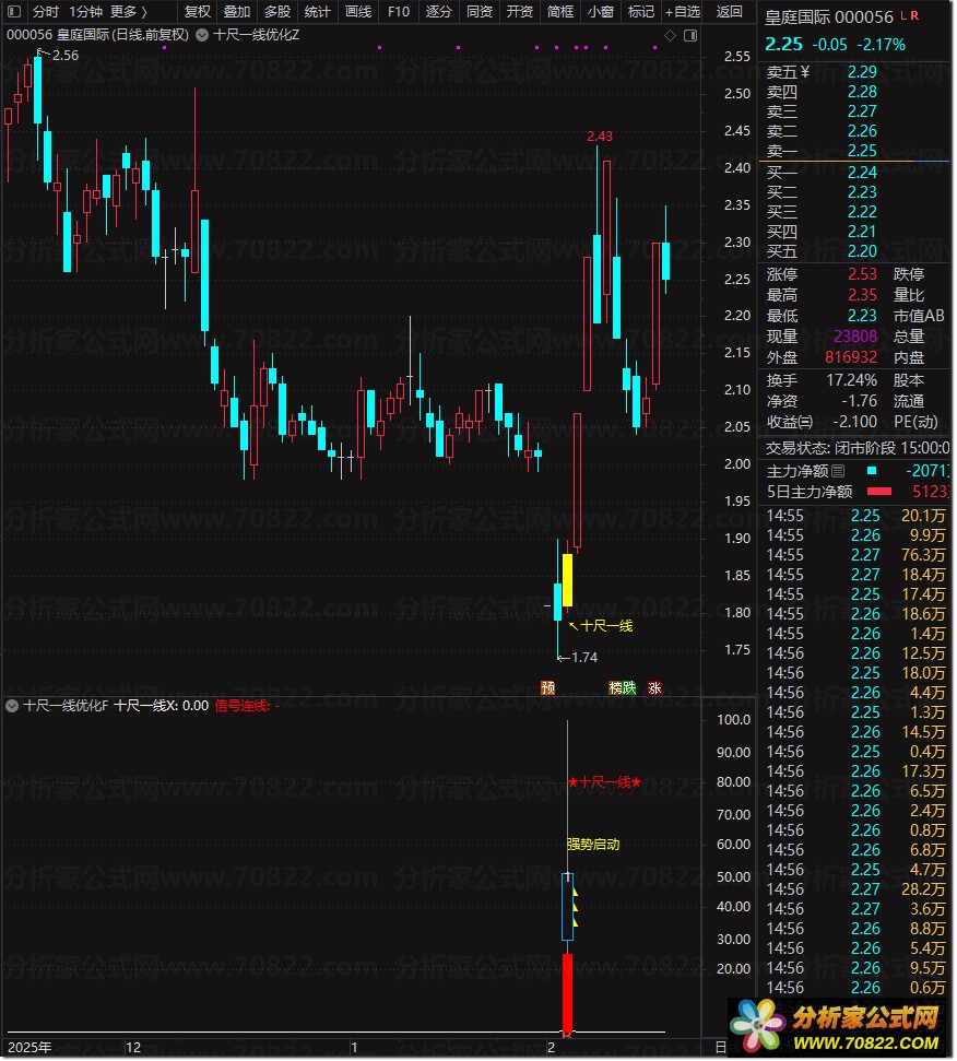 观察信号:在主图或副图中出现“↖十尺一线”或红色柱体时,表明股价已结束单边下跌,进入反弹窗口。