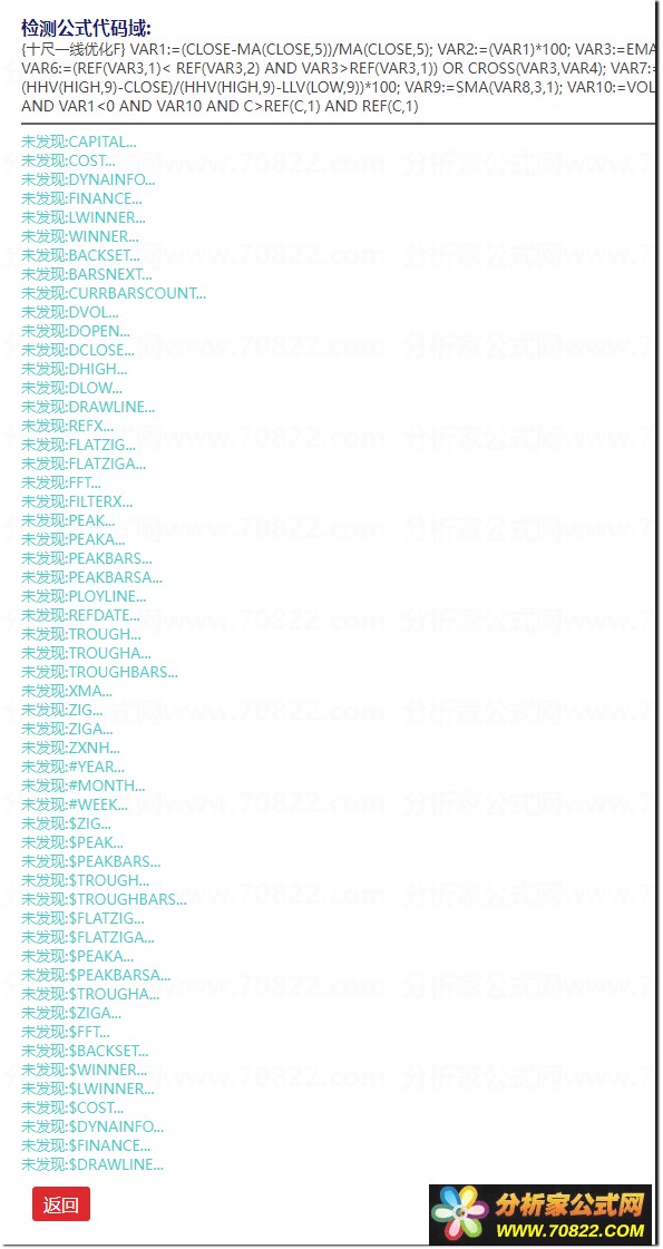 * 关于还原公式源码如果你忘记了自己编写的大智慧公式,通达信公式,同花顺公式,操盘手公式,飞狐公式,博易大师公式,金字塔公式,文华公式和交易师公式等等公式的密码,本网可帮恢复源码,有.偿.服.务无意勿扰,点击在线咨询联系我。