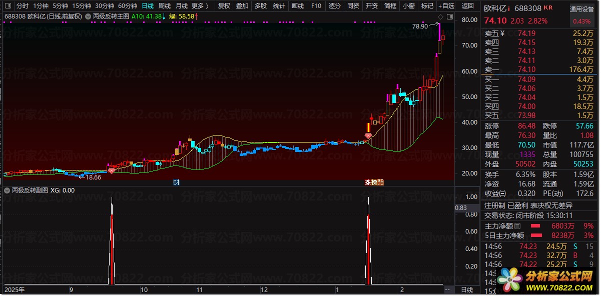 选股公式:每日收盘后或盘中运行选股,快速筛选出符合“两级反转”启动条件的标的,适合短线或波段操作。