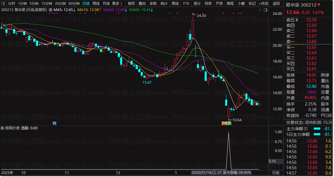 2026原创〖极限抄底〗王炸指标 成功率98% 不追高不被套 超级抄底反弹战法 新一年全新推出的王炸级股票抄底指标,经实测成功率高达98%,是专为散户打造的超级抄底选股公式源码。