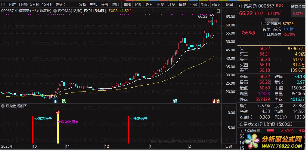 结合先进的主副图指标及多信号共振策略,此款通达信双龙出海指标能有效识别股票市场中的主升浪以及关键变盘点。具体操作方式如下: