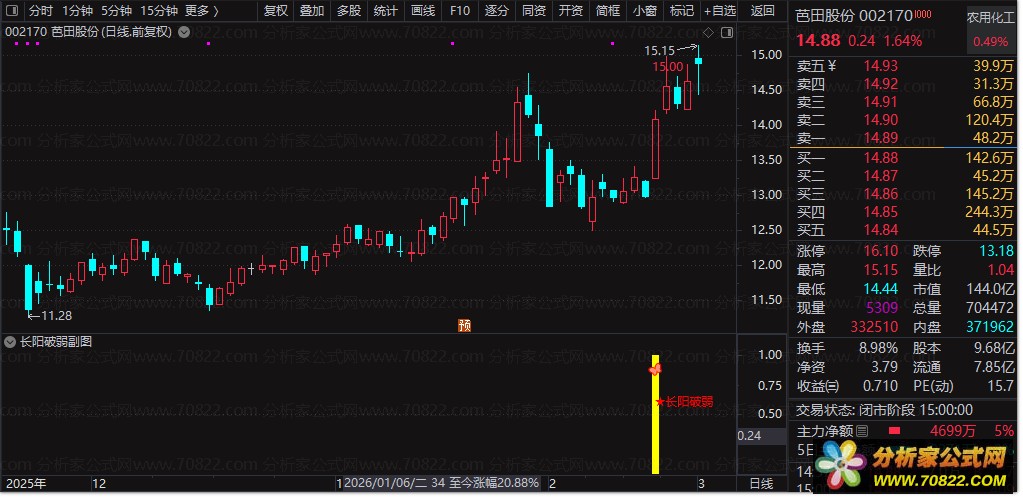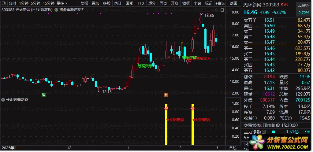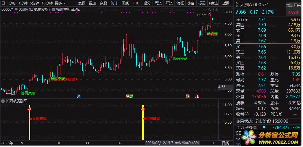 副图公式以蓝色柱状图+“★长阳破弱”文字提示实时信号,视觉醒目;选股公式则可直接用于盘后筛选或预警,适用于A股主板、创业板等具备高波动特征的标的。该策略特别适合结合通达信副图指标公式、短线强势股选股公式、长阳突破技术指标等关键词进行实战应用,是挖掘主升浪启动初期的利器。