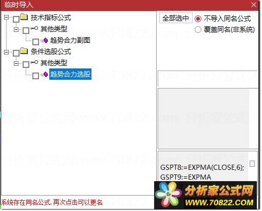 选股实战:直接运行选股公式,可快速全市场扫描出刚刚完成“趋势合力”金叉的个股。