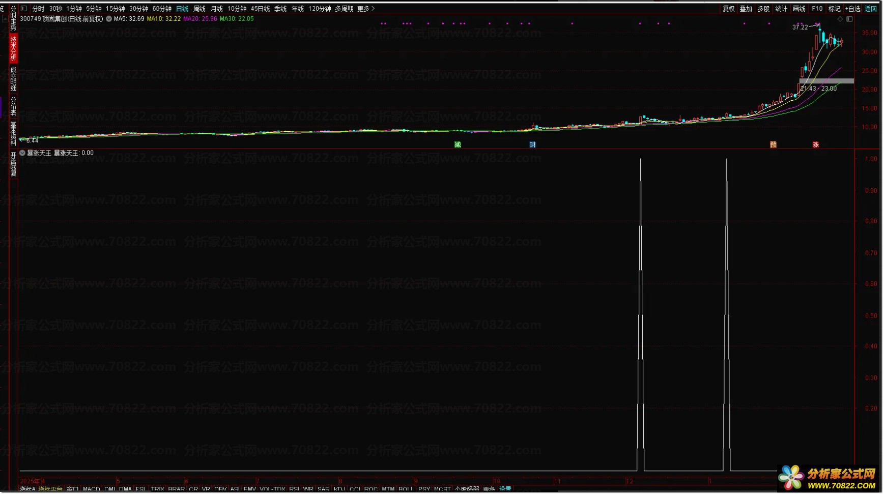 〖暴涨天王〗指标套装 经常抓到年翻几倍的大牛股 无未来函数 手机电脑通用 如何寻找年度翻倍大牛股?本套股票技术指标经常抓到年度翻几倍的大牛股,信号稳定不漂移,坚决没有未来函数,提供完整源码且不加密,手机和电脑端均可使用,无时间限制。该指标擅长经常捉到涨停板,助力个股一飞冲天,是实用的通达信选股公式之一。