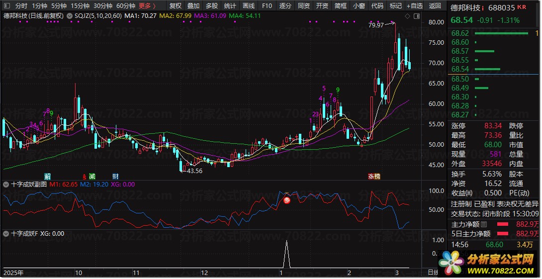 〖十字成妖〗指标套装,揭秘个股成妖,捕捉起爆点 这套专业的股票公式指标系统由辅助视图与条件筛选两大核心模块组成,其底层逻辑深度依托于两条关键的趋势参考线,旨在帮助投资者精准捕捉个股成妖的早期信号。