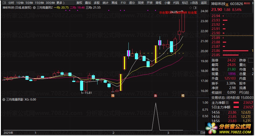 副图指标与选股指标源码通用,核心功能是自动选出突破高量阴中间位置的股票信号。通过三均高量阴选股公式,投资者可以快速筛选出符合主力启动特征的潜力个股,辅助进行股票公式指标分析和实战交易决策。