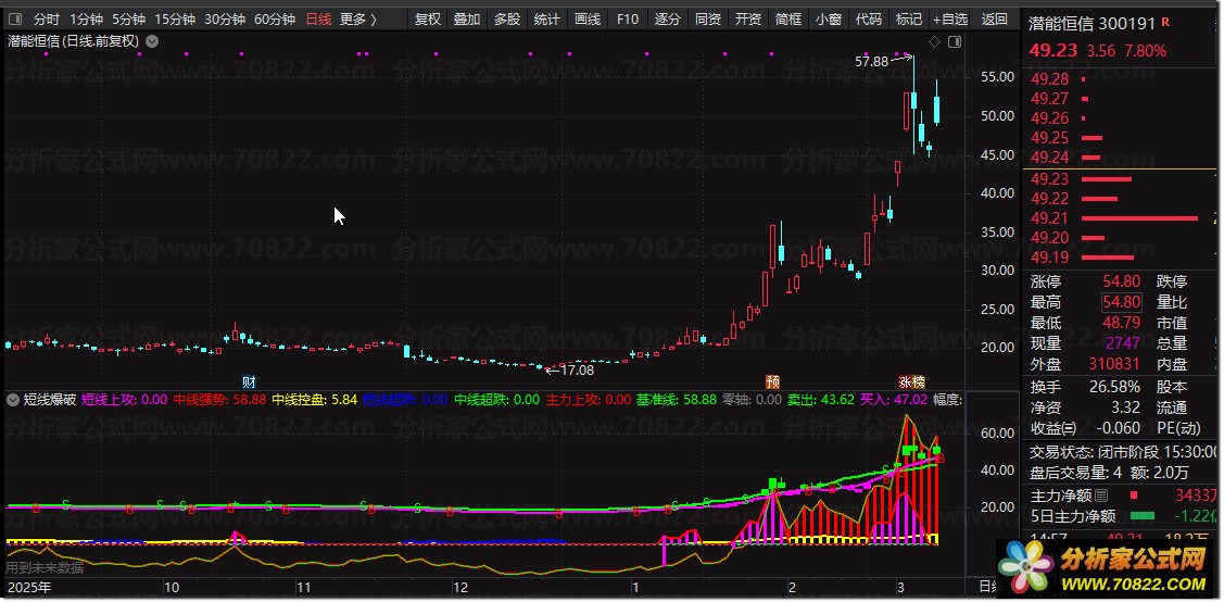 将这些核心选股逻辑转化为可执行的量化信号,就构成了下面这套独家短线爆破指标公式,帮助投资者精准捕捉主力悄悄吸筹后的拉升行情。