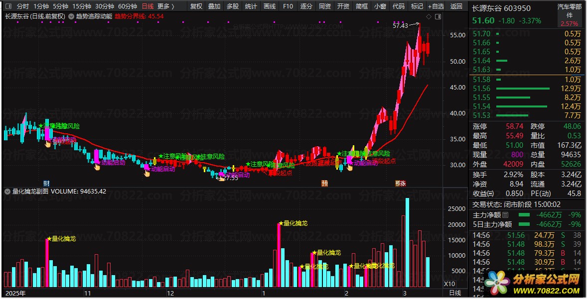 使用该趋势追踪动能指标,主升浪抓得准,顶部底部逃得快,实战胜率极高!是广大股民寻找高胜率股票公式指标的得力助手。
