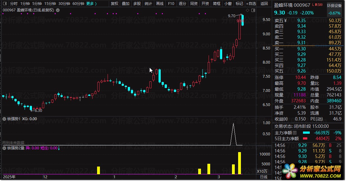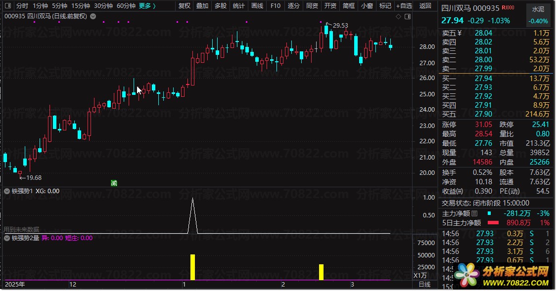 “铁强势战法”是一套专为激进型投资者打造的通达信主副图联动指标系统。主图核心逻辑在于识别“前高突破”与“60日趋势线”的共振,通过绘制压力线(SS/YY)精准定位突破点。其独特的“牛妖启动”信号,专门捕捉均线多头排列且实体饱满的短线爆发个股。副图则聚焦成交量异常分析,通过“异”和“短庄”柱状图,直观展示倍量至三倍量的主力资金介入痕迹,确保上涨有量能支撑。
