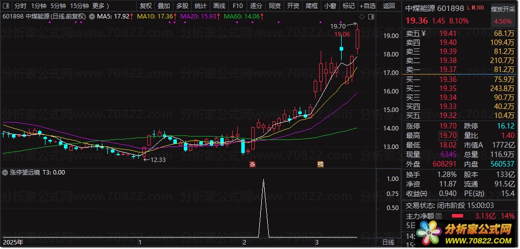 第三根缩量确认阳线即将收盘时(建议在14:45以后,K线形态基本定型)。以该阳线的收盘价作为买入价。此举旨在确认当日低开高走且缩量形态成立,避免盘中冲高回落的陷阱,确保股票公式指标信号的准确性。