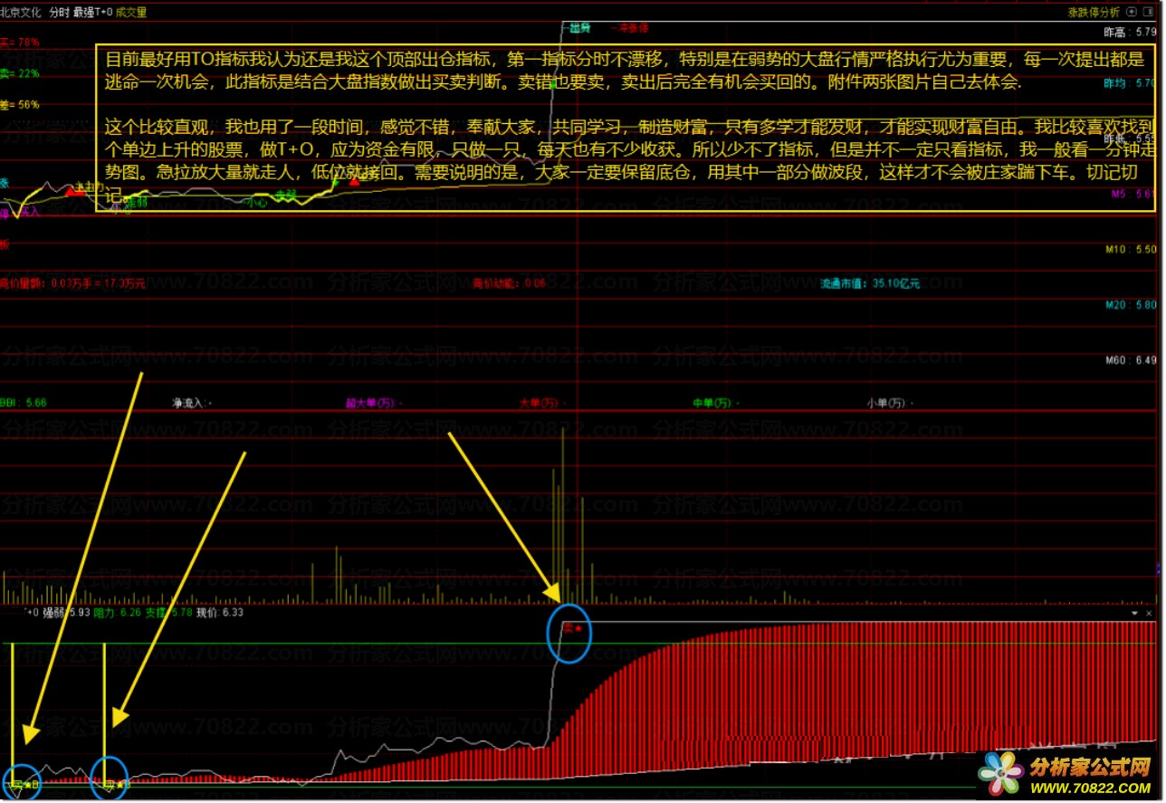 目前最好用T+O指标我认为还是我这个顶部出仓指标, 第一、指标分时不漂移,特别是在弱势的大盘行情严格执行尤为重要,每一次提出都是逃命一次机会,此指标是结合大盘指数做出买卖判断。卖错也要卖,卖出后完全有机会买回的。附件两张图片自己去体会