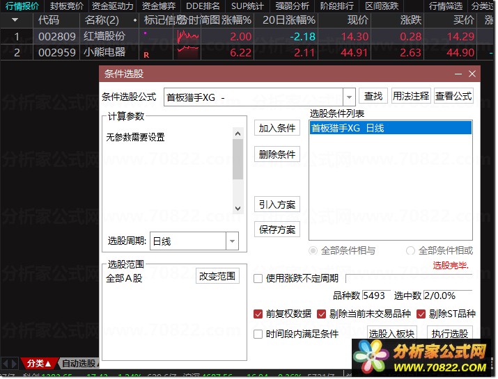 XG1:=(ZF*竞价量/LTP*10000)/100>=2 AND NN1 AND MM AND REF(涨停1,1) AND 全剔 AND O>REF(H,1);