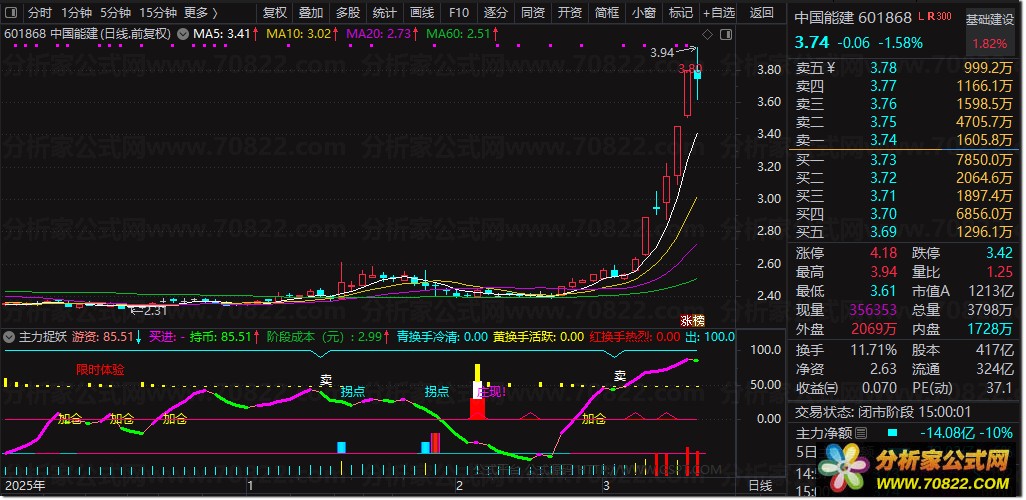 游资上扬(洋红粗线)买入,下穿(绿线)持币;