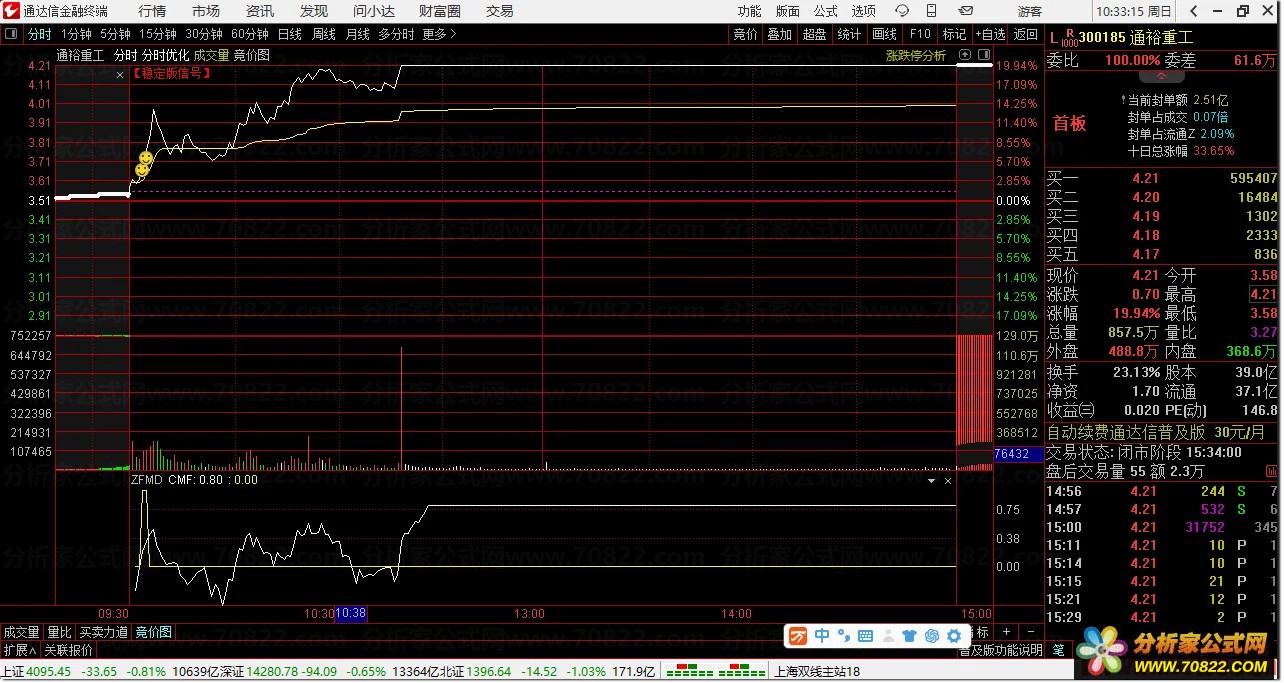 这个信号的设计是分时出现大单,且上涨速度快的个股