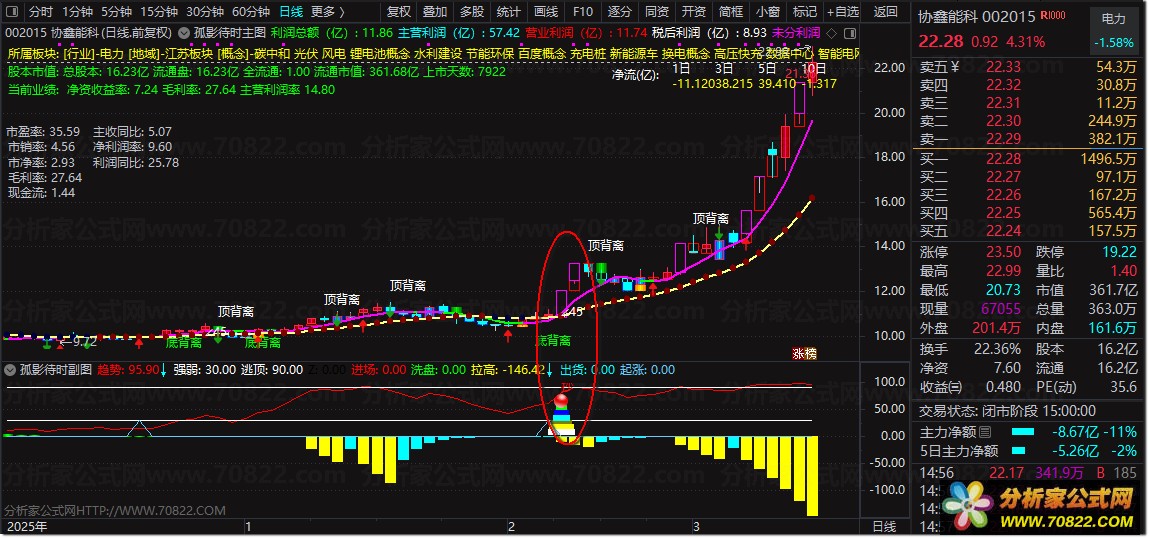 主图观察:当K线出现红色渐变柱且伴随“底背离”文字提示,同时均线系统(孤影走势)上穿“天堂之路”时,为潜在买点。关注屏幕左侧的财务数据与右侧的资金净流入,确保基本面无忧。