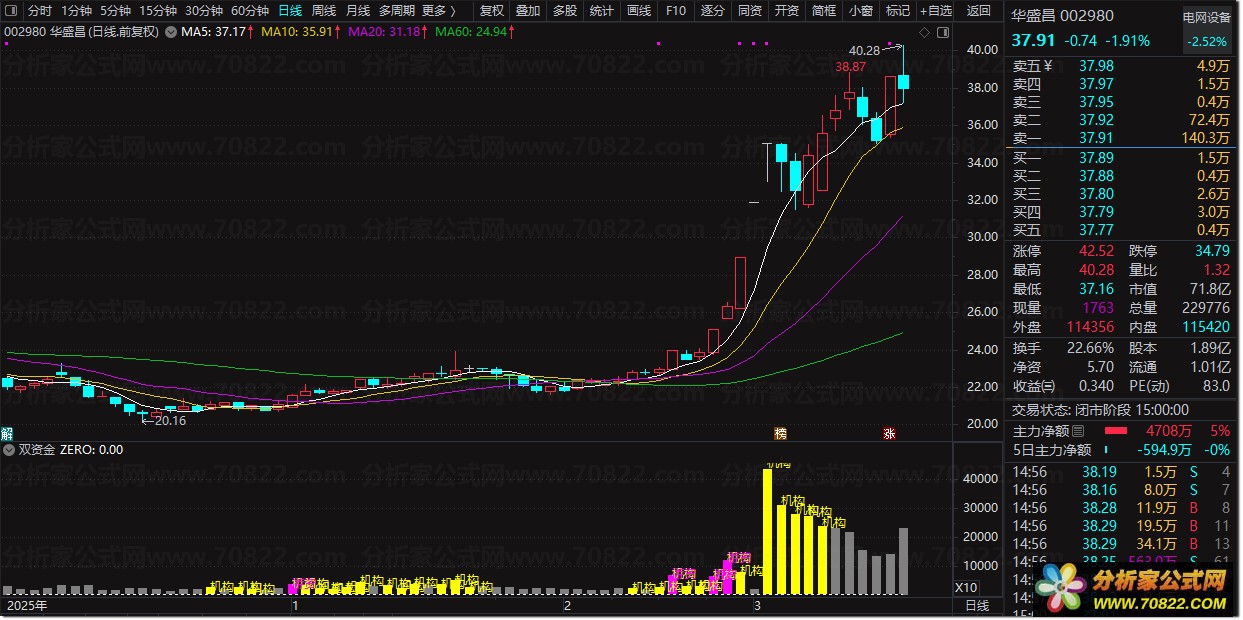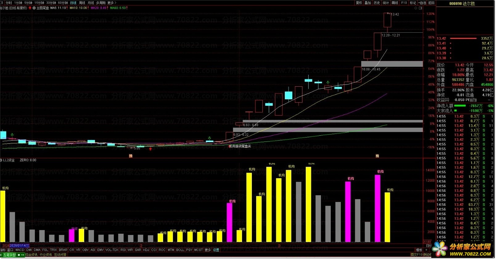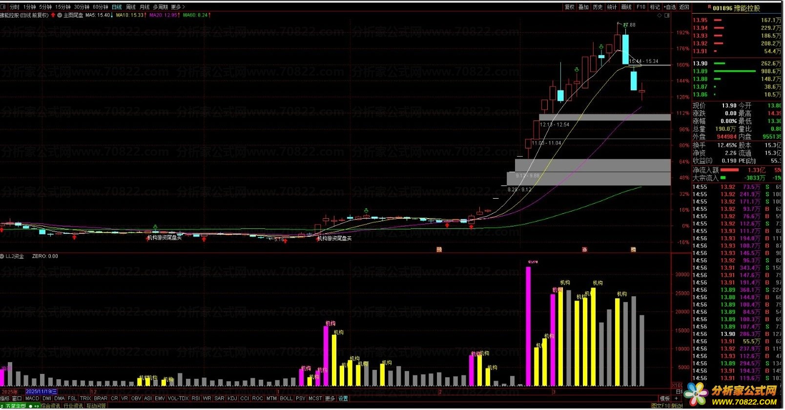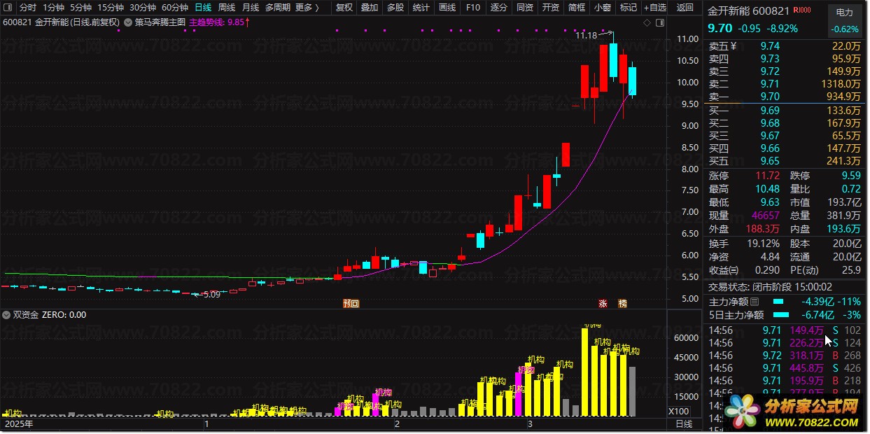 2026年〖双资金〗新思路,跟随大资金吃大牛战法副图 看穿机构游资动向 支持最新鸿蒙手机端 通过量价关系精准识别市场三大参与主体:机构、游资与散户。该公式巧妙融合成交量异动分析与K线强度判断,以直观的柱状图呈现资金流向。