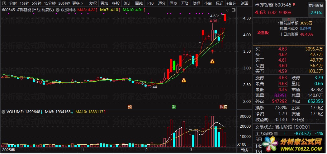 当出现双图标共振,且股价站上红色MA3与黄色MA7均线时,即为高胜率介入时机。此公式特别适合追求涨停板战法与龙头股回调低吸的激进型投资者,助你在震荡市中锁定主升浪。