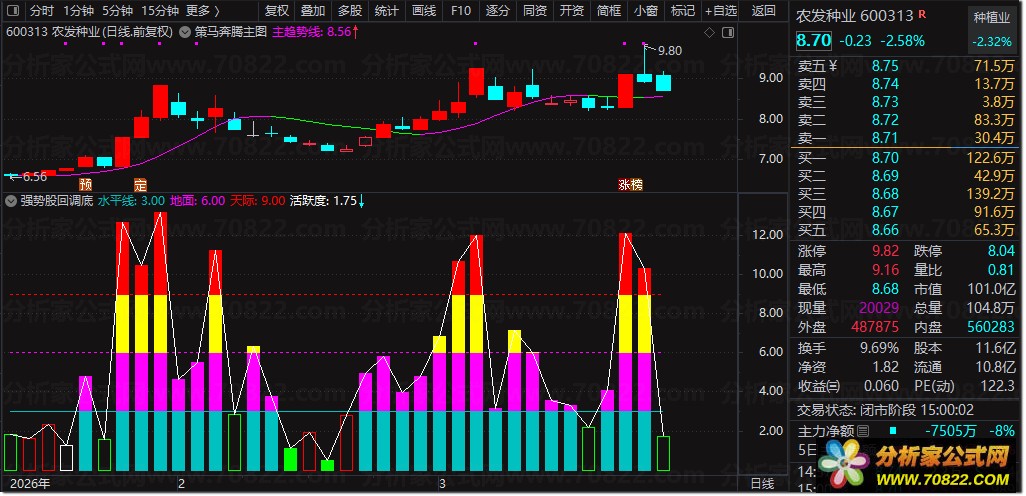 〖强势股回调底〗副图指标,强势回调寻找短线底部神器 这个是自己一直在用的,专做强势的回调,寻找回调底部的副图,做短线很好用。