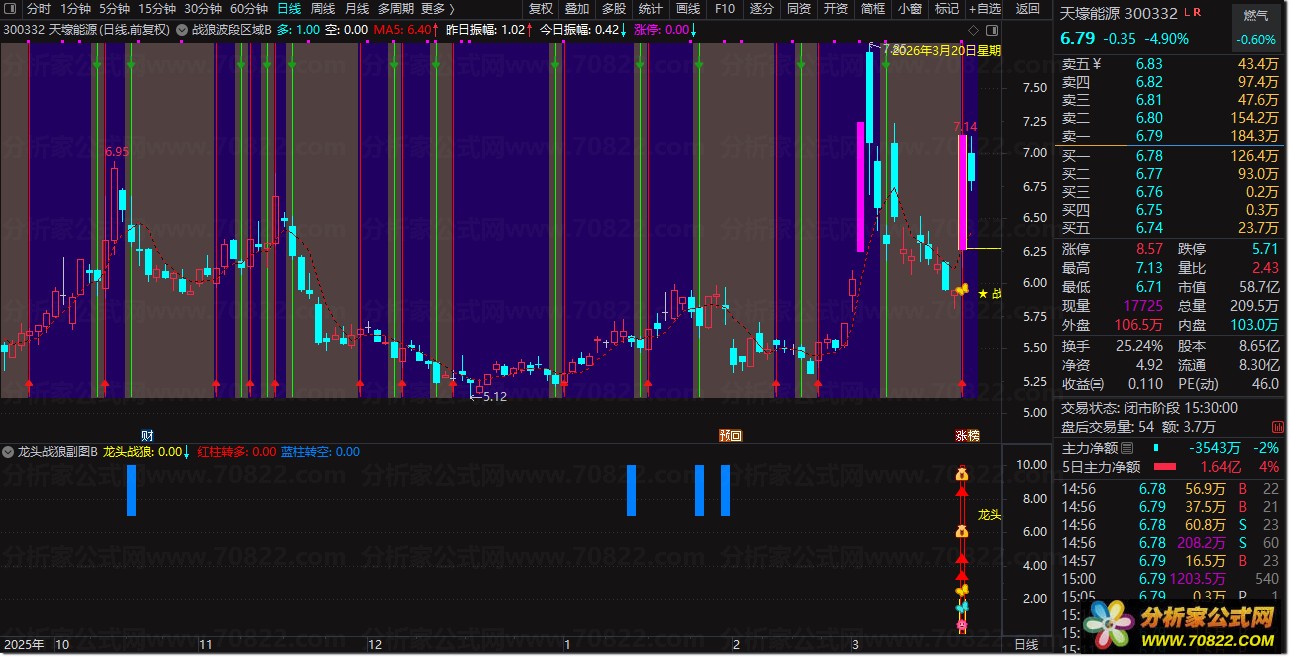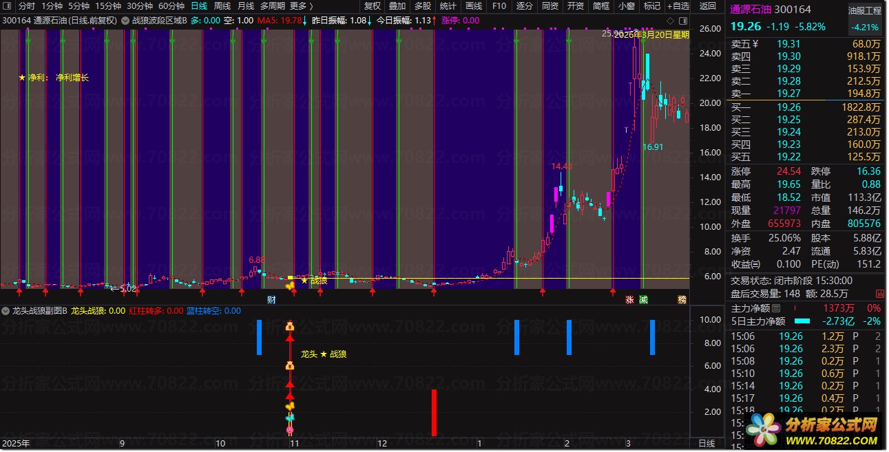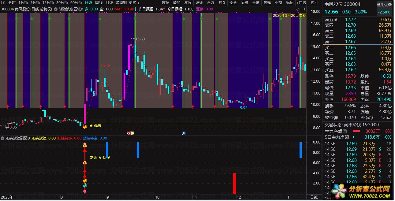 龙头战狼系列〖战狼波段区域B 龙头战狼副图B〗 【战狼波段区域主图】战狼原波段K线主图改成了波段背景区域,看波段更加清晰,买卖点明确!