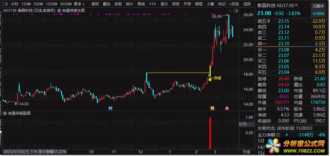 独家解密〖有量突破〗主副图/选股,突破以后一柱擎天,量价齐升擒牛股,捕捉主力启动点