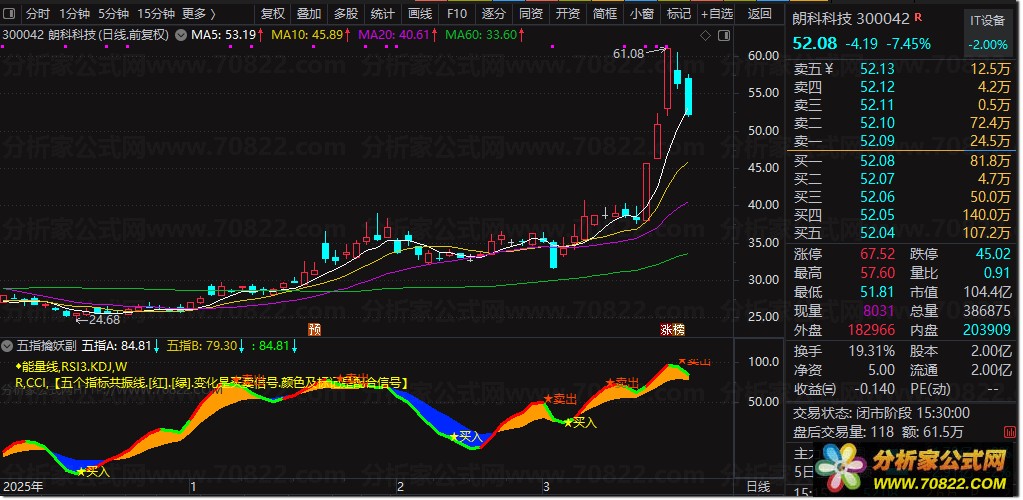 〖五指擒妖〗副图/选股指标 波段操作诀窍与用法详解 五指擒妖副图指标专为波段操作设计,配套精准选股公式,全程无未来函数。其核心在于能量线、KDJ、W&R、RSI及CCI五大股票公式指标的协同共振,助您洞察大势并捕捉买卖时机。该指标实战准确率高,是优化通达信选股策略的得力助手。