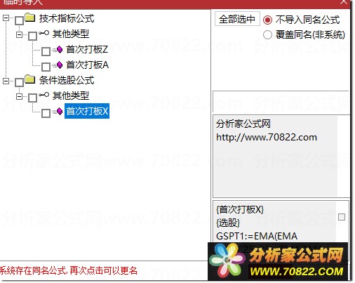 * 关于股票公式时间限制,如果在引入大智慧公式,交易师公式或者飞狐公式的时候,发现公式名称栏是空白的,这时候调整电脑时间到1997年,又能出现公式名称,并且能正常显示,可能是公式使用期限已过。