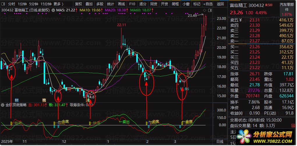 经过大量历史数据测试,其中的铁底信号胜率表现优异,建议使用者在出现信号时结合成交量放大进行二次验证,以提高交易成功率。作为实用的选股指标,它能有效辅助判断市场底部。