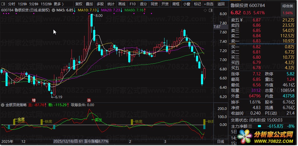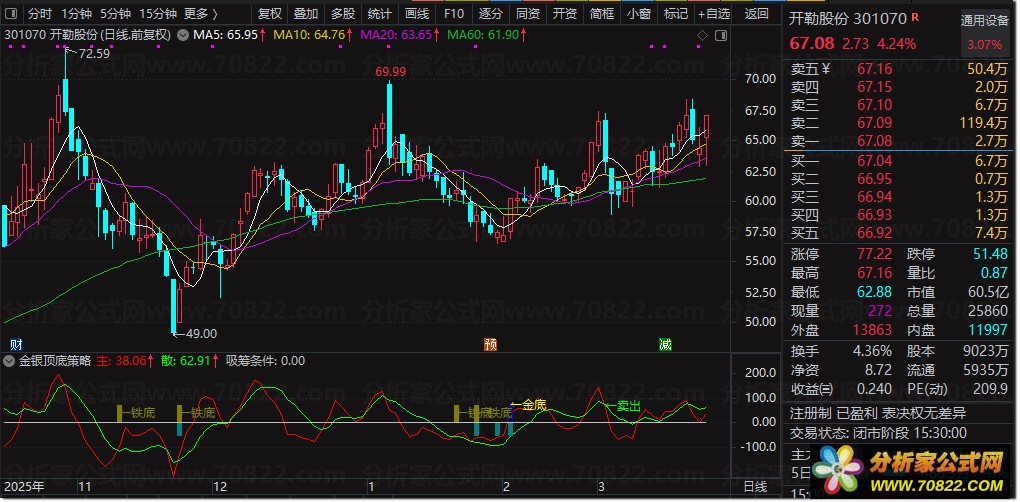 〖金银顶底〗指标套装,捕捉趋势反转 铁底银底金底信号 本指标通过动量压力资金多维度条件精准识别底部形态,涵盖银底、金底及铁底三种经典形态,同时提供明确的卖出信号,是股民捕捉趋势反转的得力助手。