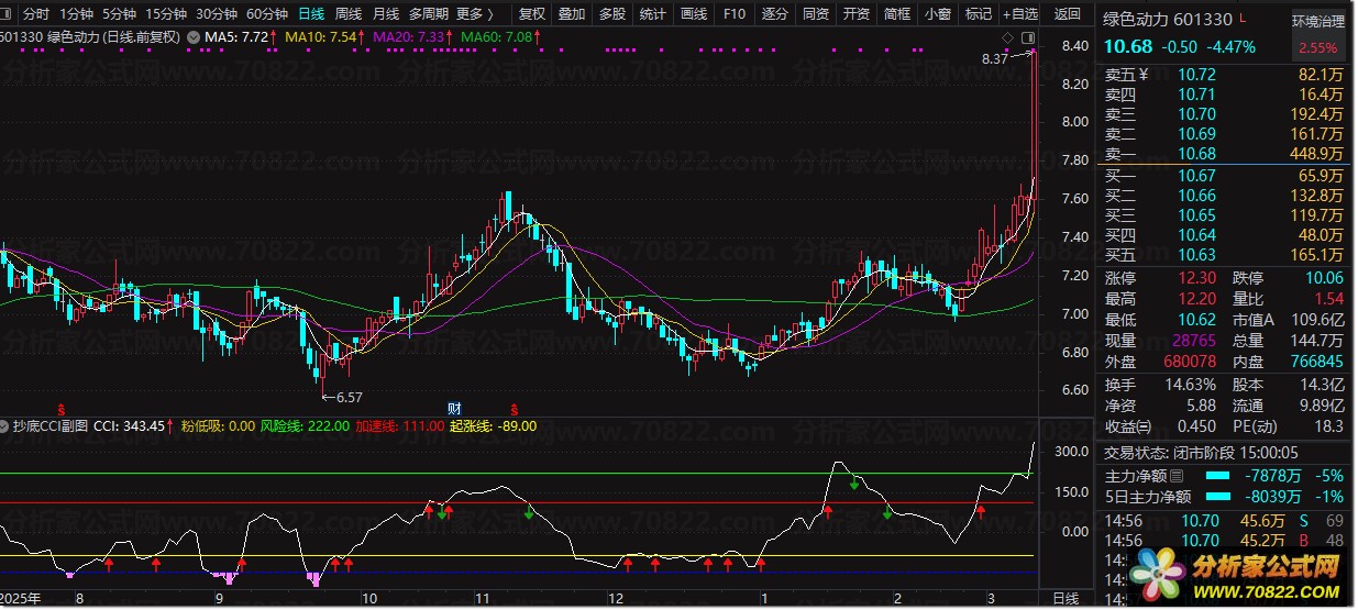 开展捉妖操作时,务必挑选流通市值低于100亿的股票,因为市值过高的标的,资金难以有效推动股价大幅上行。小盘股弹性大,更容易在抄底CCI指标发出信号后走出翻倍行情,是短线客的首选目标。