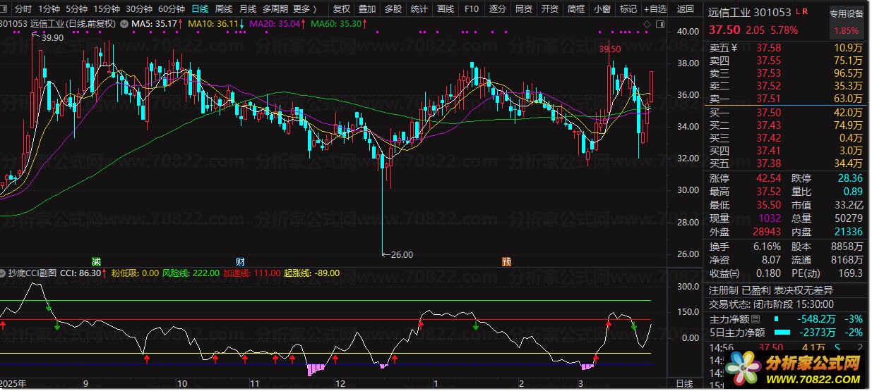 〖抄底CCI〗副图/选股指标详解 确认底部财运来 无未来函数 高成功率 附使用方法详解 本指标是一款专为投资者打造的实用选股工具,不仅配套有高效的选股公式,且经过验证不存在未来函数,可靠性极具保障。该指标以经典的CCI顺势指标为核心构建而成,其核心优势在于能够精准先行锁定股票底部区域,进而帮助投资者精准捕捉底部的绝佳买入时机,实战中成功率颇为可观,是众多股民寻找低估值潜力股的重要参考。