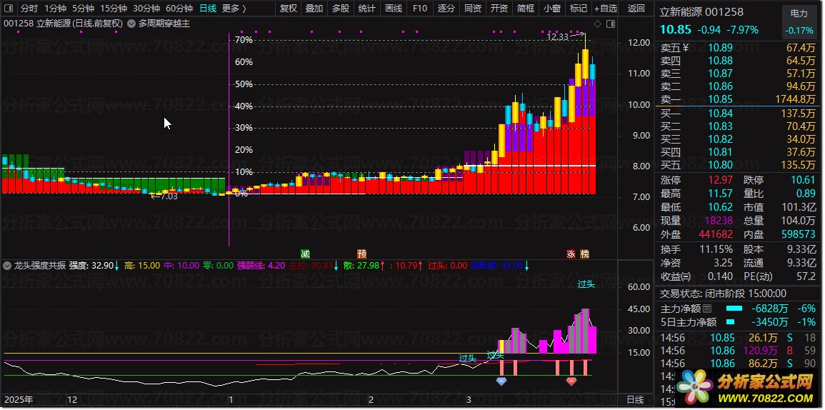 该指标为**多维度共振型副图指标**,融合**均线强度、主力资金、量能活跃度、涨停信号、突破信号**五大核心逻辑: