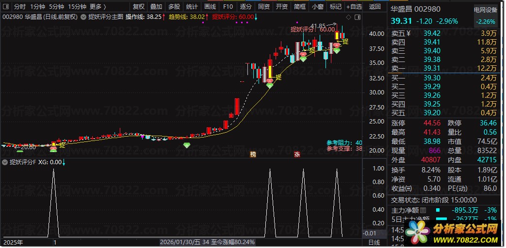 3、当这个位置信号出现的时候,建议结合右上角的“捉妖评分”数值来综合分析。通常评分超过60分才算合格,具备操作价值。
