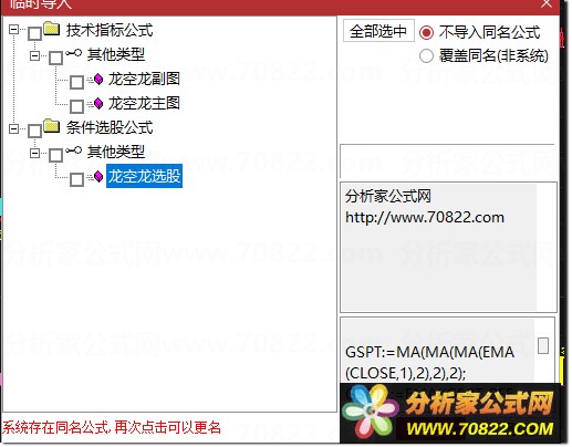 * 关于股票公式时间限制,如果在引入大智慧公式,交易师公式或者飞狐公式的时候,发现公式名称栏是空白的,这时候调整电脑时间到1997年,又能出现公式名称,并且能正常显示,可能是公式使用期限已过。