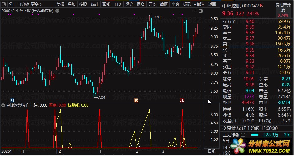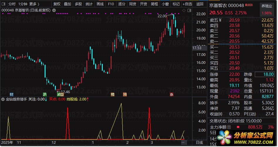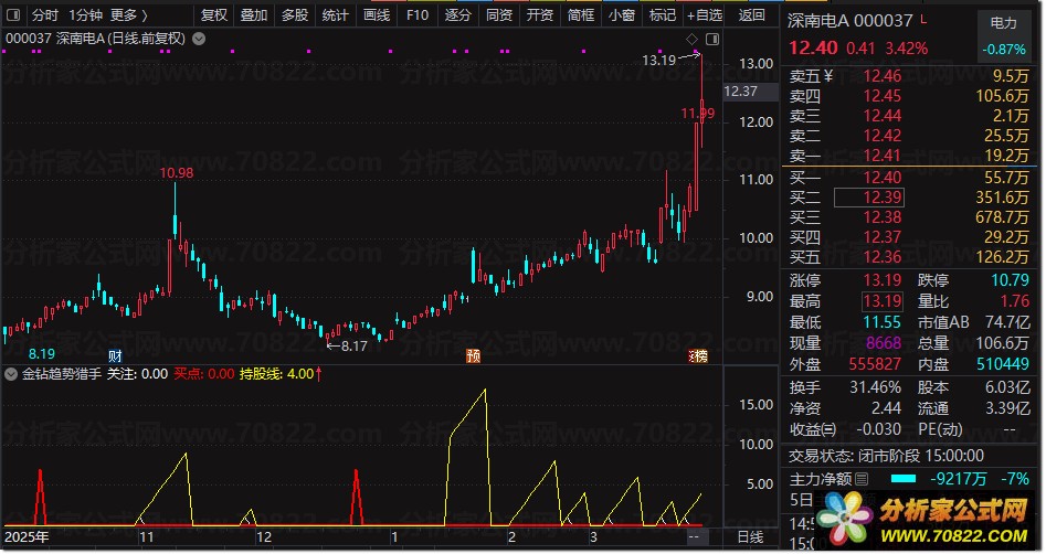 3. 持股策略(黄线“持股线”) :只要黄色持股线数值大于0,说明股价仍在5日线上方运行,可 耐心持仓 ;若持股线归零,则警惕短期趋势转弱,考虑 止盈或减仓 。