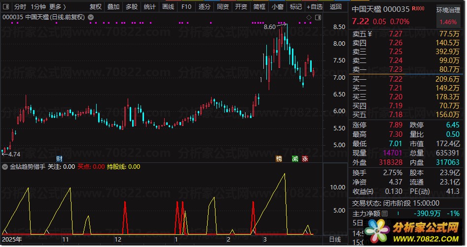 「金钻趋势猎手」均线共振擒主升,精准捕捉波段起爆点! 公式名称: 金钻趋势猎手