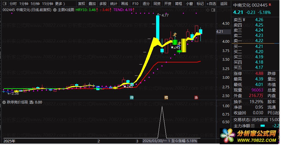 竞价低开:捕捉次日集合竞价大幅低开(<-3%)的瞬间,寻找错杀后的介入点。