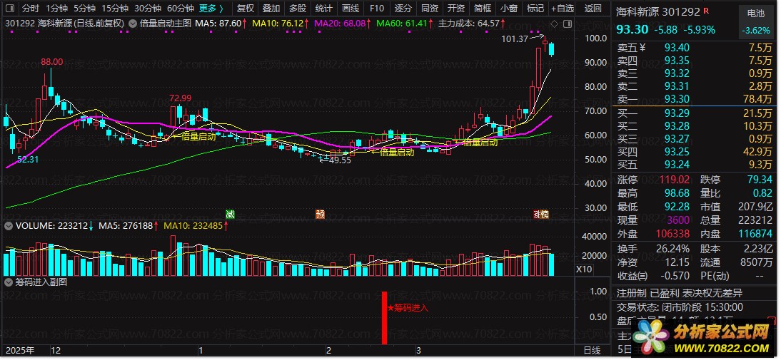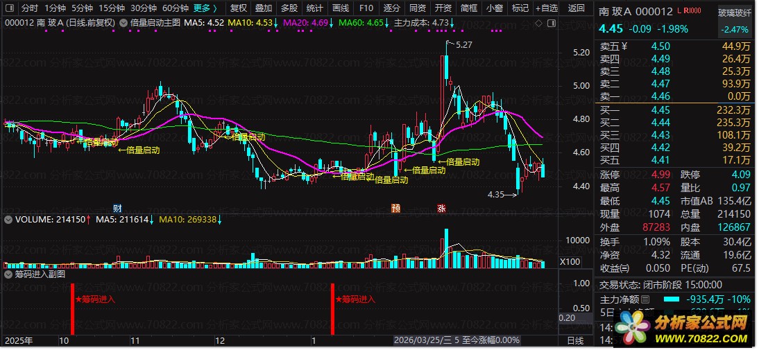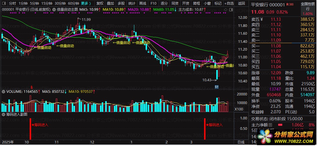 信号识别:当副图底部出现红色柱子并显示“★筹码进入”文字时,即为关注信号。
