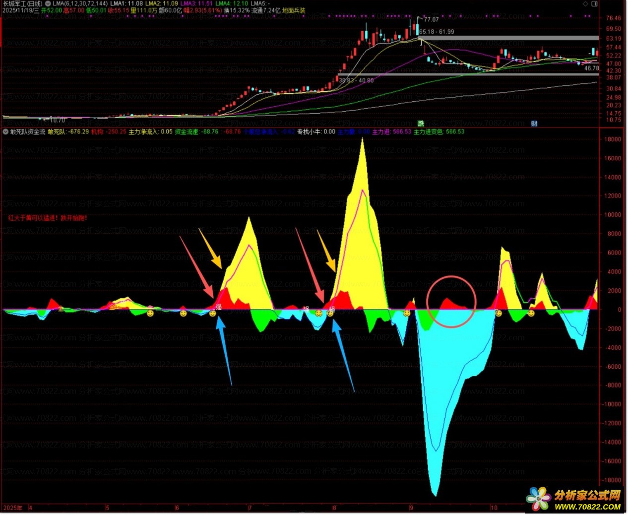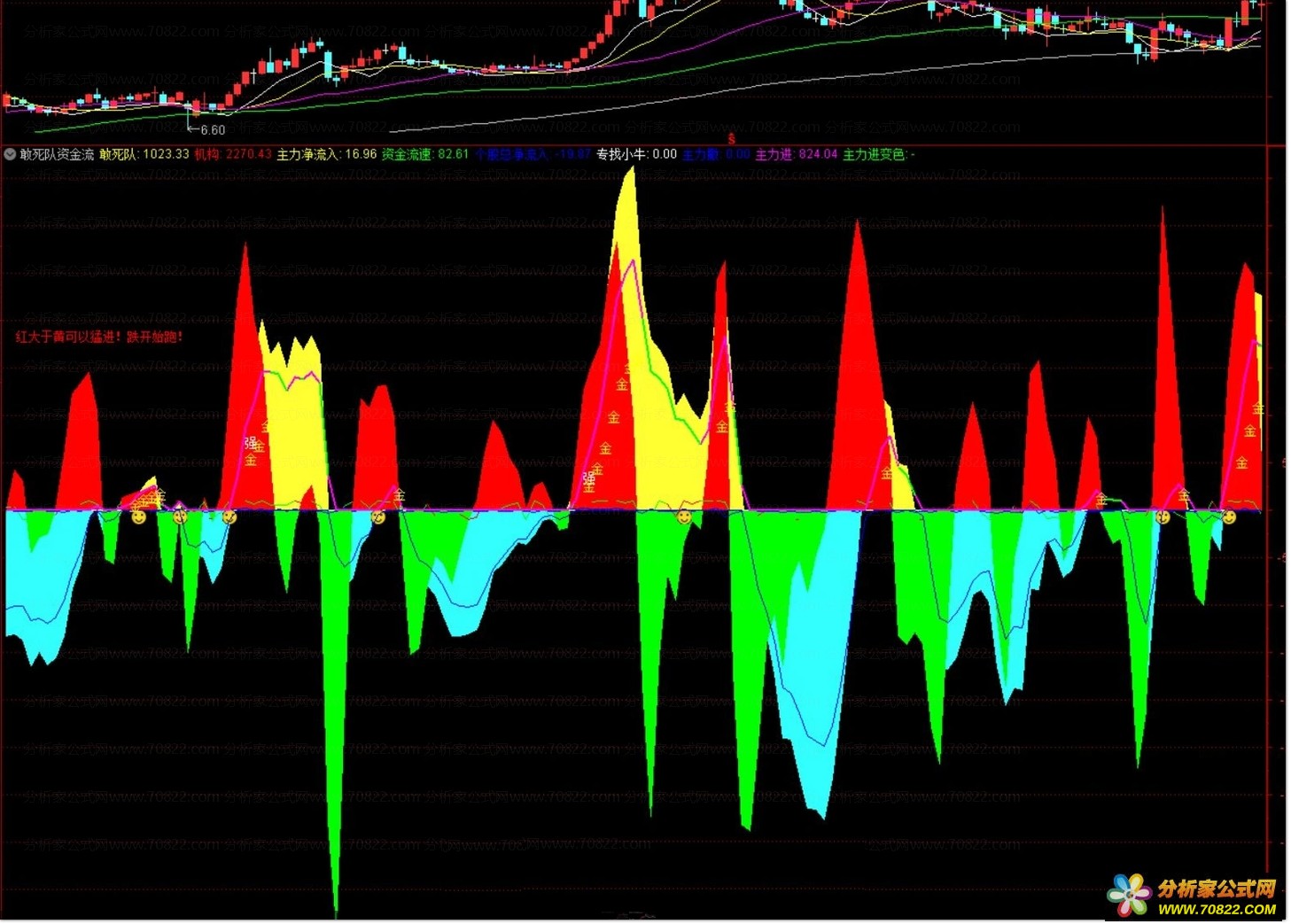 〖敢死队资金流〗判断个股强弱,跟上主力,主力+机构+游资共振 这个指标本人一直在用,可以用于判断股票的强弱。也适用于高位跑路。是一个非常不错的参考指标。