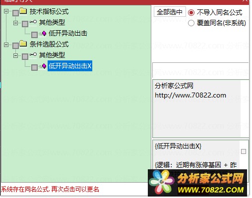 * 关于股票公式时间限制,如果在引入大智慧公式,交易师公式或者飞狐公式的时候,发现公式名称栏是空白的,这时候调整电脑时间到1997年,又能出现公式名称,并且能正常显示,可能是公式使用期限已过。