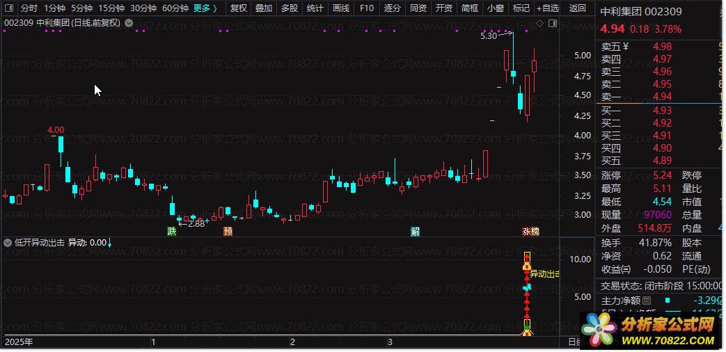 今天,我们要分享的是一套经过实战验证的低开异动出击通达信选股指标。它不追求虚无缥缈的预测,而是通过严格的量化条件,捕捉那些昨日大跌挖坑,今日强势反包的爆发点。