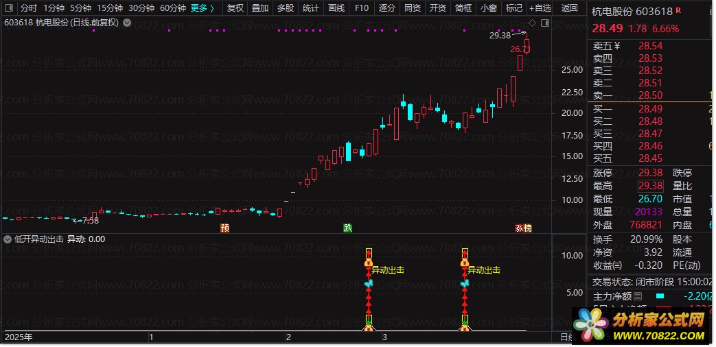 〖低开异动出击〗指标套装, 捕捉主力黄金坑暴力反弹信号 在股市的博弈中,最让人心跳加速的莫过于捕捉到主力资金的异动瞬间。尤其是那些早盘看似弱势低开,甚至一度被市场抛弃,随后却突然放量拉升、直冲涨停的个股。这种低开高走的形态,往往隐藏着主力洗盘结束、即将启动主升浪的重大信号。