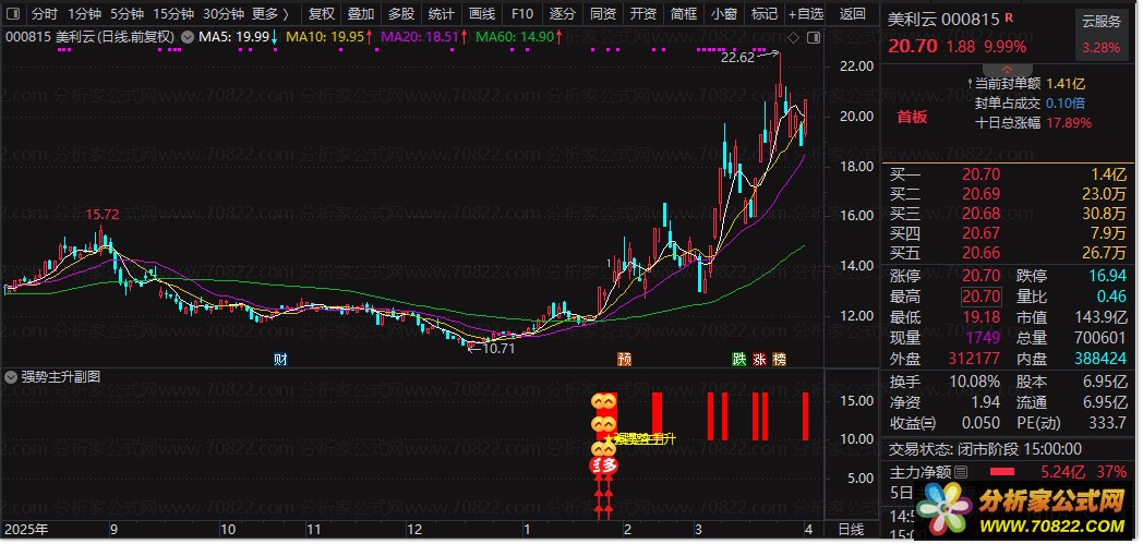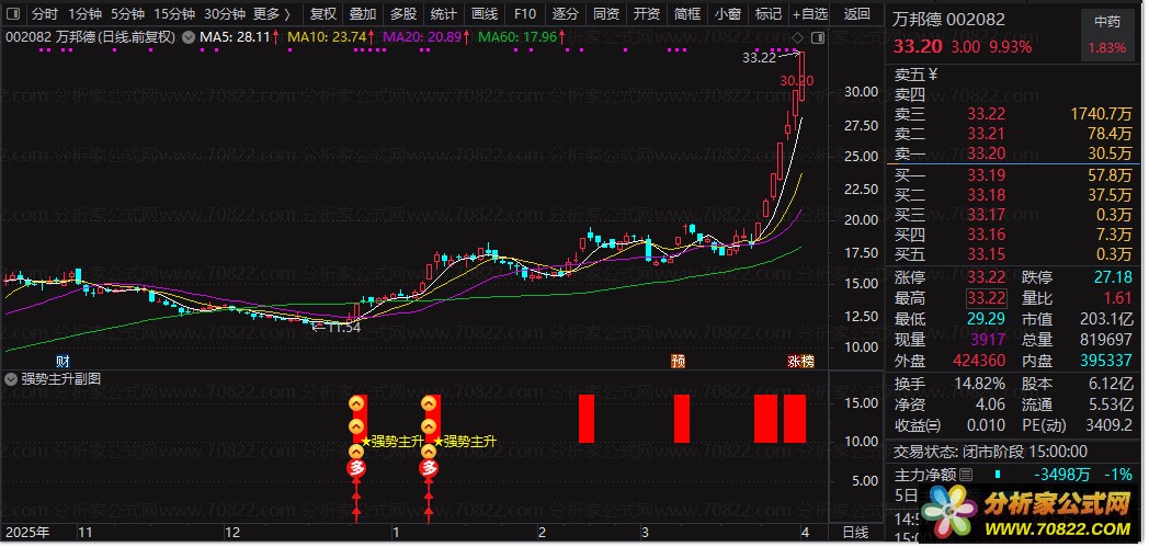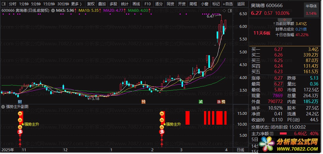 信号识别:当副图上出现“★强势主升”文字及相关图标时,表示该股可能进入主升浪,是潜在的买入时机。